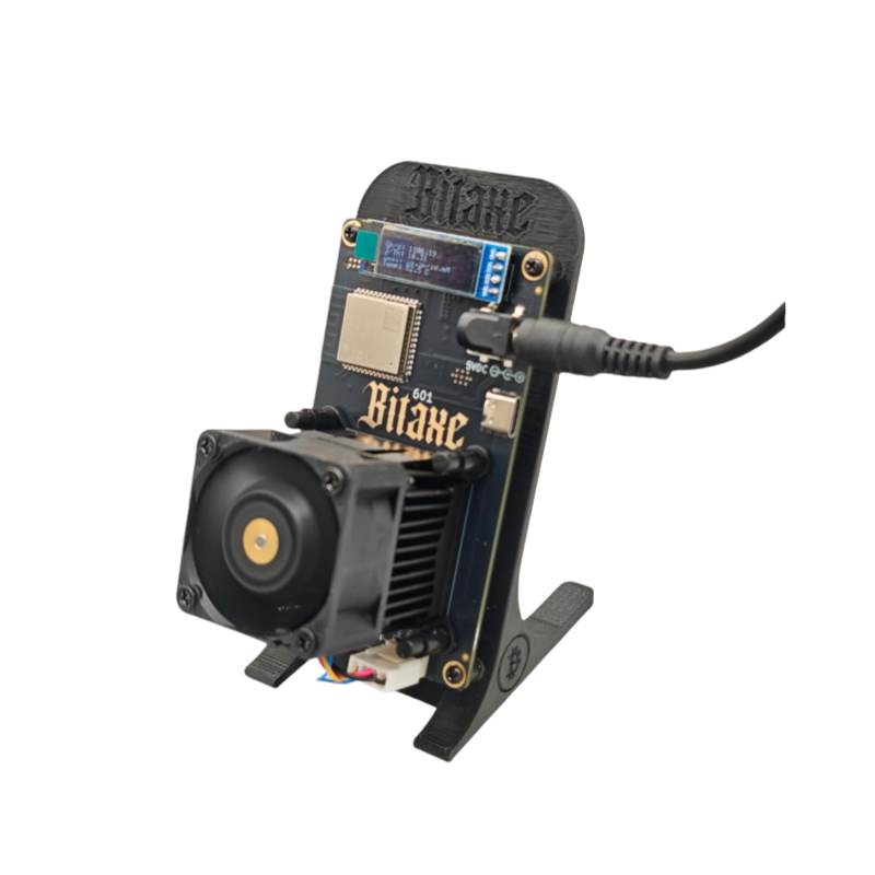 The Bitaxe Gamma 601 also features a quiet 5V 40mm dual ball bearing fan for efficient cooling and minimal noise, plus a USB-C port for seamless firmware updates.